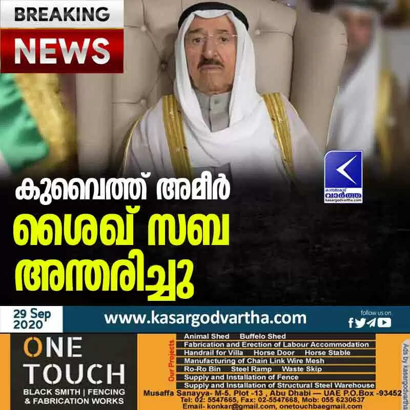 കുവൈത്ത് അമീർ ശൈഖ് സബ അന്തരിച്ചു