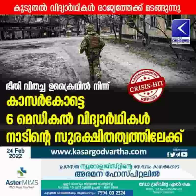 ഭീതി വിതച്ച ഉക്രൈനിൽ നിന്ന് കാസർകോട്ടെ 6 മെഡികൽ വിദ്യാർഥികൾ നാടിന്റെ സുരക്ഷിതത്വത്തിലേക്ക്
