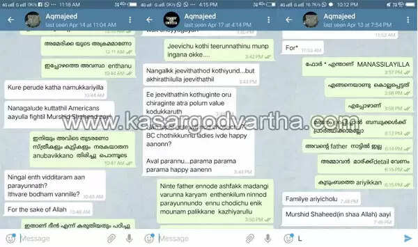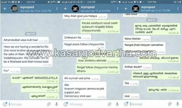 Keywords : Kasaragod, Top-Headlines, Kerala, World, Padanna, Trikaripure, Ashfaq, Message, Telegram, Daish, Terrorism, Jihad, Family.