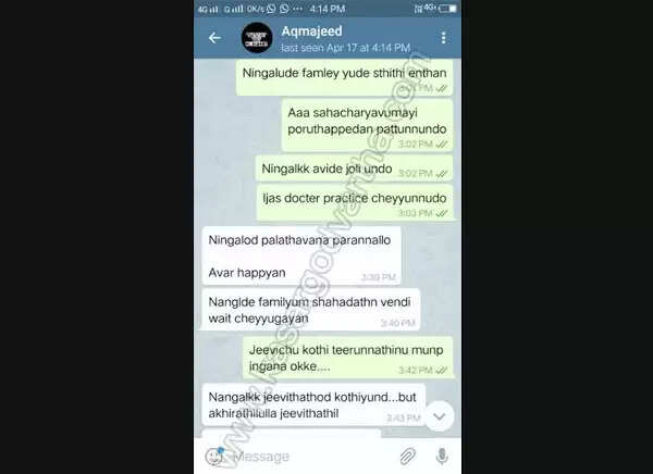 തിരിച്ചുവന്ന് യഥാര്‍ത്ഥ മുസ്ലിമായി ജീവിച്ചുകൂടെയെന്ന് ചോദിച്ചപ്പോള്‍ അബൂബക്കര്‍ അല്‍ ബാഗ്ദാദിക്ക് ബയ്അത്ത് കൊടുക്കാന്‍ വന്നതാണെന്നും ജന്നാത്തുല്‍ ഫിര്‍ദൗസില്‍ വെച്ച് കാണാമെന്നുമായിരുന്നു അഷ്ഫാഖിന്റെ സന്ദേശം. യഥാര്‍ത്ഥ മുസ്ലിമിന് ഒരിക്കലും നിങ്ങളുടെ നാട്ടില്‍ ജീവിക്കാന്‍ സാധിക്കില്ലെന്നും ഇവിടെ കിട്ടുന്ന സമാധാനം പറഞ്ഞറിയിക്കാന്‍ കഴിയാത്തതാണെന്നുമാണ് സന്ദേശത്തില്‍ വ്യക്തമാക്കുന്നത്. സ്ത്രീകളും കുട്ടികളും മരണയാദന അനുഭവിക്കുകയല്ലെ തിരിച്ച് പോന്നൂടെയെന്ന് ചോദിച്ചപ്പോള്‍ നിങ്ങള്‍ എന്ത് വിഡ്ഢിത്തമാണ് ചോദിക്കുന്നതെന്നും ഇതുവരെ ബോധം വന്നില്ലെയെന്നുമായിരുന്നു തിരിച്ച് ചോദിക്കുന്നത്. അല്ലാഹുവിന്റെ അനുഗ്രഹത്തിനായി കാത്തിരിക്കുന്നുവെന്നും മറുപടിയില്‍ വ്യക്തമാക്കുന്നു.