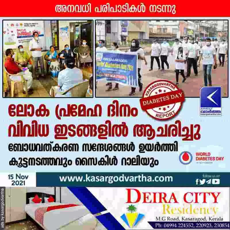 Keywords:  Kasaragod, Kerala, News, Top-Headlines, World, Programme, Kumbala, World Diabetes Day observed in many places.